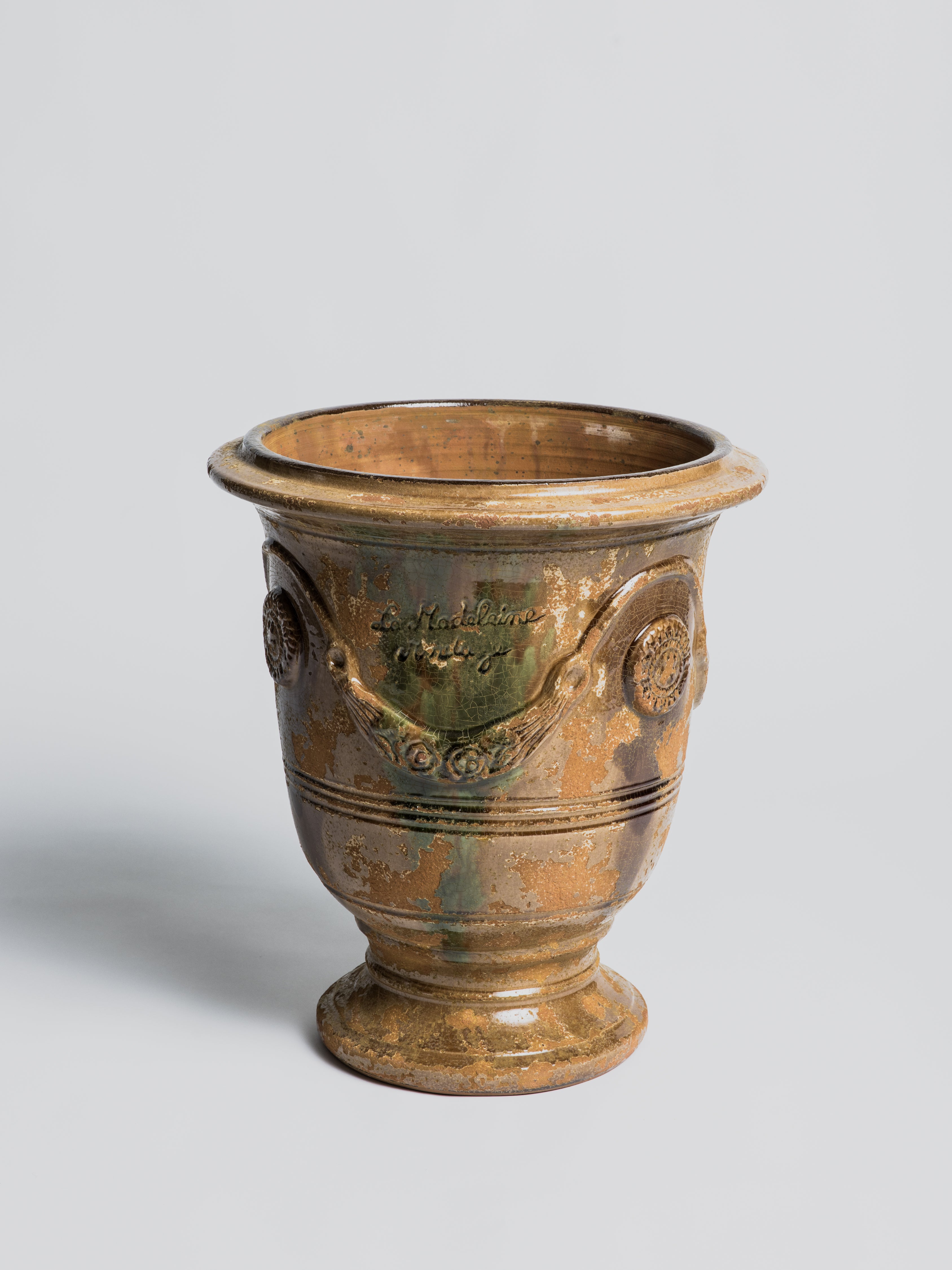 Experience the timeless beauty of our Anduze Pot in Vieilli Flamme. This traditional garden vase boasts a delicate glazed finish, handcrafted with exquisite attention to detail. Add a touch of classical elegance to your outdoor space. Please note, this pot is not frost proof.