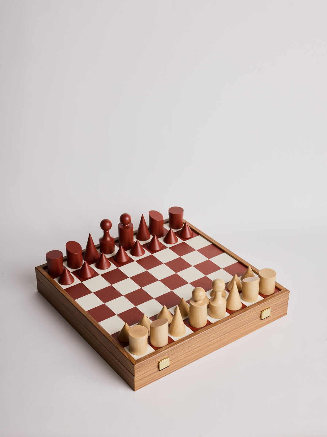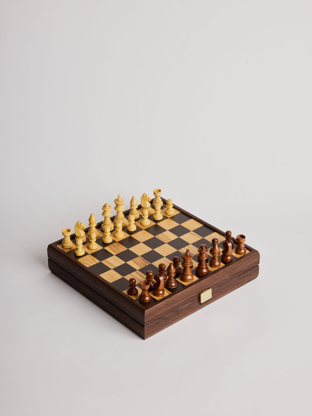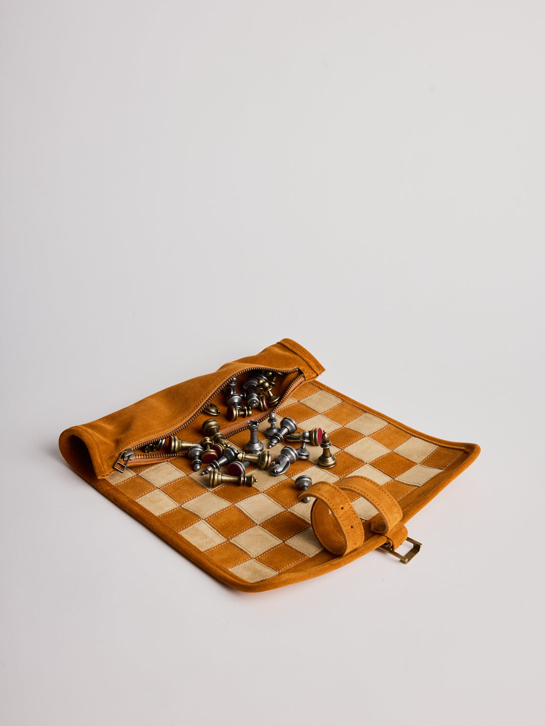 Handmade Travel Size Chess Set With Metal Chessmen & Cinnamon Brown